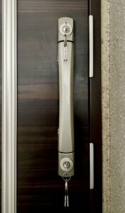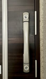 寝屋川市では、築年数が30〜40年を超えるマンションが多く存在します。しかし、建物自体は古くても、エントランスや玄関ドアのみが近年リフォームされているケースが増えており、その結果として 最新型のGOAL製プッシュプル錠が採用されている という状況がよく見られます。