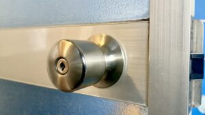 内部の錠前が錆びつき、ノブが空回りしている状態。