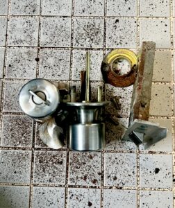 ステンレスを少しずつ割いて、マイナスドライバーを差し込み、潤滑剤556DXをスプレーして回す…が、激硬。