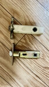 このタイプは、ノブ取り付け時にネジを強く締めすぎるとラッチの動作が妨げられることがあるため、少し緩めに締めて動作確認を行いました。結果は良好で、スムーズな開閉が可能となりました。