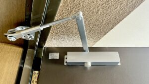 ドアクローザーは、ドアが勢いよく閉まらないように油圧でスピードを制御し、静かで安全な閉まり方を実現する重要な装置です。