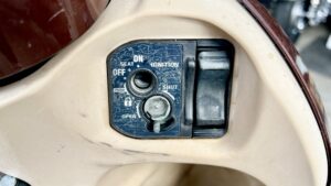 バッテリーが上がっていたためエンジン始動までは確認できませんでしたが、鍵としての動作は問題なし。