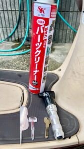 まずは鍵穴のシャッターを開け、パーツクリーナーで内部を丁寧に洗浄。