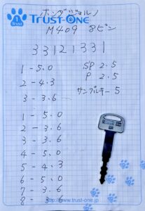 ホンダ車の中でも比較的読み取りやすい構造で、鍵作成の難易度としては中程度のモデルです。