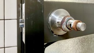 浴室内側のドアノブが腐食し、開閉不能に