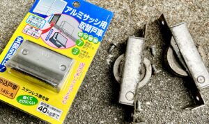 まずは動く側の引戸を取り外し、ローラーの交換から作業を開始しました。使用したのはマツ六社の2型14S(14〜24mm対応)。ドア厚に合わせて適切なサイズを選定し、傾きをしっかりと調整しました。
