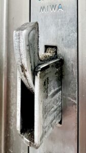 ※今回の錠ケースはバネが内蔵された構造のため、分解は行わず、できる限りの範囲で安全かつ効果的な処置を施しました。