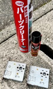 - パーツクリーナーを使用して、錠ケース内部を徹底洗浄