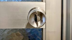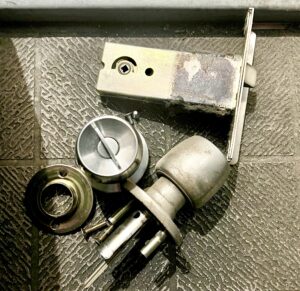既存の錠前を取り外し、新しいDAC-100ケースを取り付け、ノブもセットで交換。