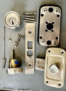 さらに、お客様から「下の鍵もディンプルキーに交換したい」とのご希望があり、上部は元々ディンプルタイプだったため、上下ともGOAL社製V18タイプで統一することになりました。