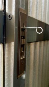 店舗の引戸に取り付けられていた戸先側の鍵のツマミが外れてしまい、施錠ができない状態になっているとのことでした。