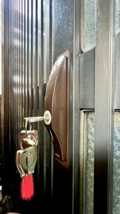 ちょうど中央の錠前も、押し込み式の操作で使いづらく、経年劣化による引っかかりも見られました。
