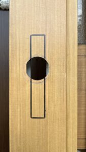 少し大きめの穴になりますが、ドアの中心に合わせて施工することで、