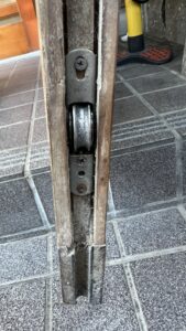 木製ドアでありながら、調整式ローラーが使用されていました。