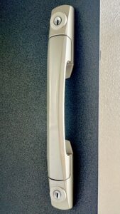 この年代の物件に多いプッシュプルハンドルタイプで、上下に鍵がついている仕様がすぐに頭に浮かびました。
