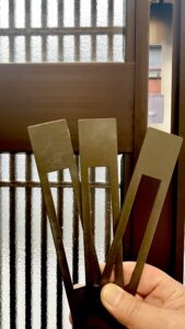 通常の開錠方法では対応できないため、ペンチを使用して持ち替え、鍵穴の隙間を広げながら慎重に作業。