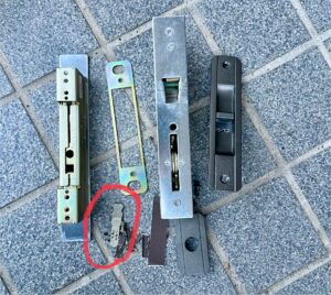 確認すると、YKK製の引戸にWEST社製のディンプルキーが使用されており、鍵のヘッド部分が完全に破損していました。
