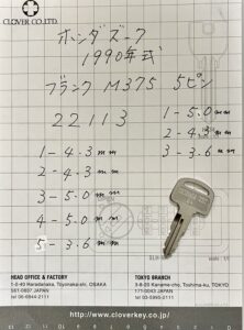 持ち込まれたシリンダーを確認すると、ホンダの初期型M375タイプ。シャッターもなく、鍵穴が非常に見やすい構造。5ピンの3段差という、今では珍しい仕様です。