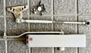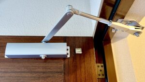 以前より交換が必要になるかもしれませんとお伝えしていたこともあり、今回は事前に準備していた新品のドアクローザーに20分で交換完了。