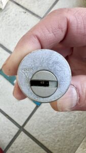 専用のピンキットを使えば修理も可能でしたが、お客様からはせっかくなら新品にしたいとのご希望をいただき、今回はシリンダー交換で対応することに。