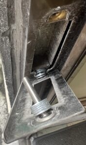 • 受け側ストライクにワッシャーを7枚重ねて底上げし、ロックが確実にかかるよう調整