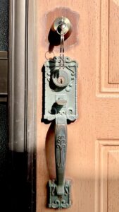 お客様は寝屋川市内の中古住宅にお引越しされたばかり。玄関ドアには上下2か所に異なる鍵が取り付けられており、防犯性を高めたい、鍵の種類がわからず不安とのことで、当店にご相談いただきました。