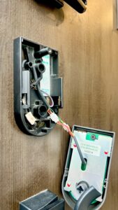 お電話をいただいたのは前日。お客様は鍵をすぐに交換したいとのご希望でしたが、ドアにはリモコンセンサーが搭載されており、通常の鍵交換では対応が難しい構造でした。
