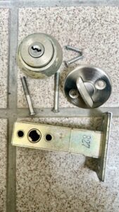 寝屋川市のお客様から「玄関の上の鍵が、回すときに反動がなく、軽すぎて不安」とのお問い合わせをいただきました。現地にて点検を行ったところ、以下の状況が確認されました。