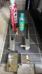 錠前を分解し、内部洗浄と潤滑処理を実施